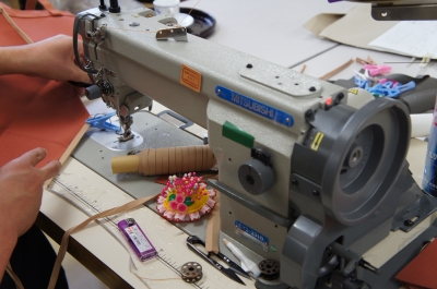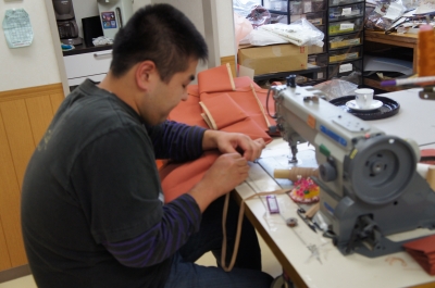なんと革の部分は手縫い!
