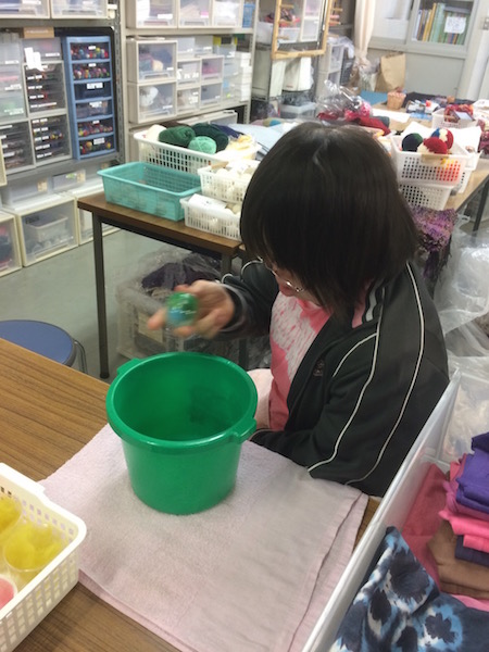 メンバーさんたちによる手紡ぎや手織りの実演を会場内で行ってくれるので