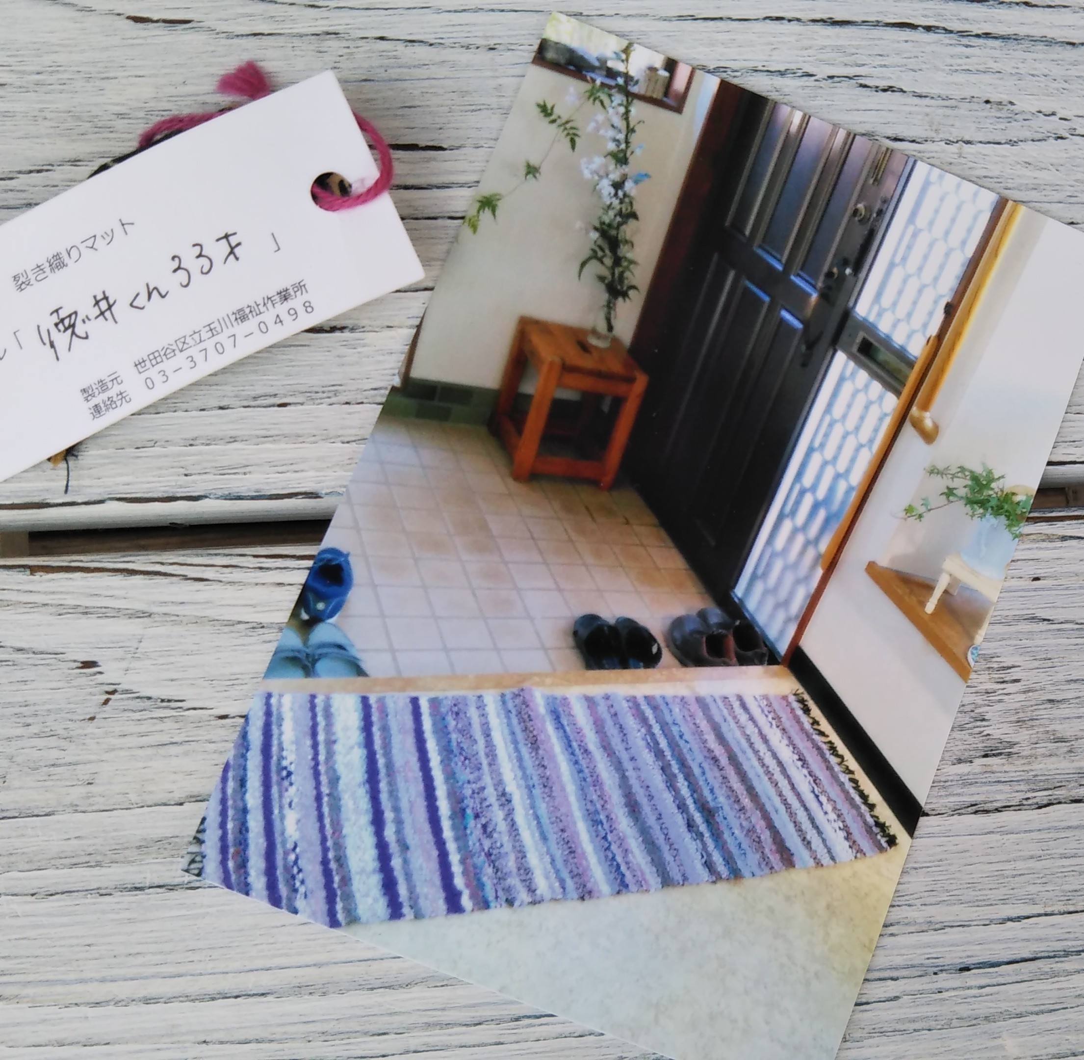 写真の裏には、マットの作り手かもしれない(?)玉川福祉作業所の”徳井くん33才”さん宛てで