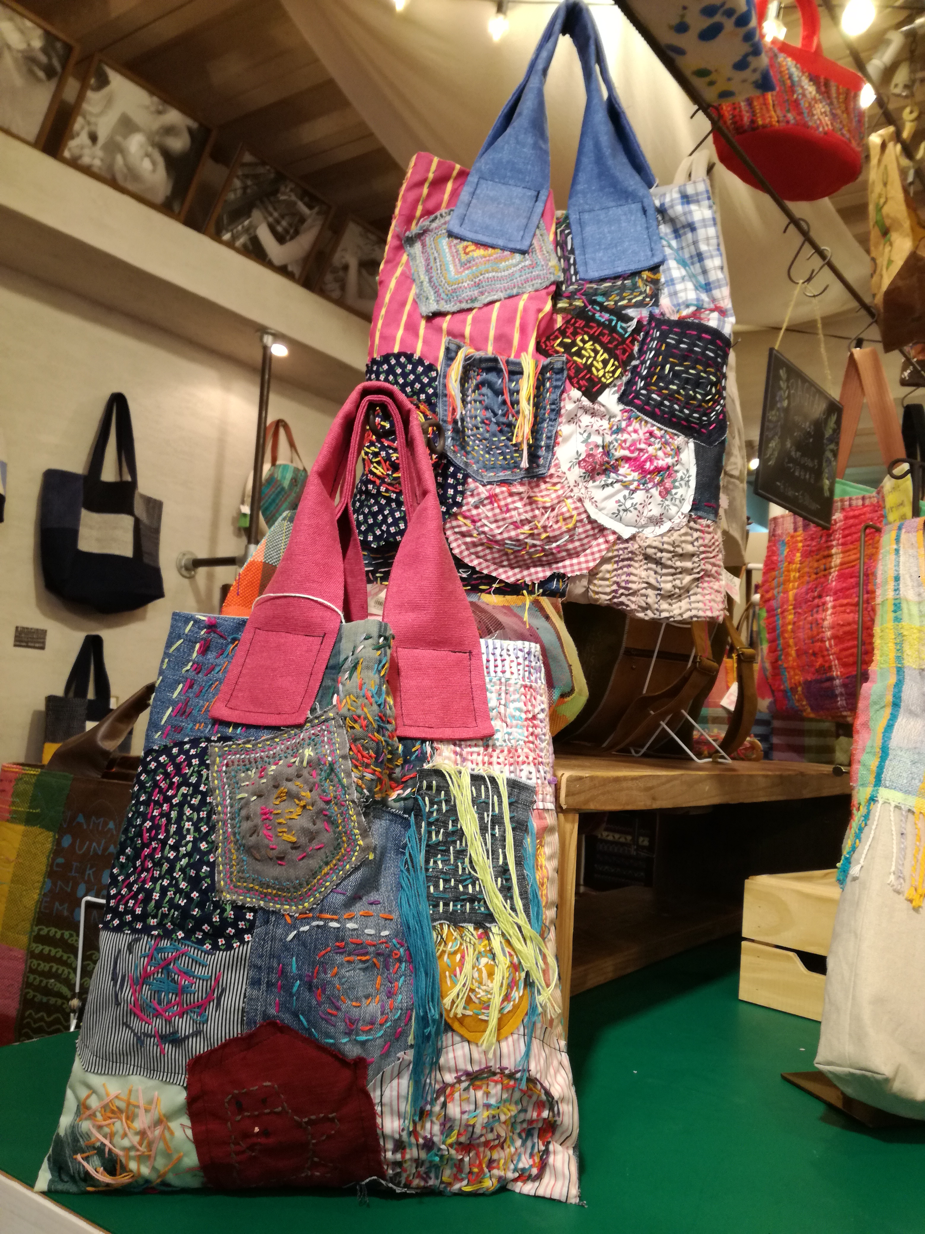 そして、クレイジーキルトバッグの虜になられたお客様。 この方はマジェルカの常連さんなのですが、どれも可愛く決められないとのことで 国分寺にあるものも見て決めますとのこと。 はしごして、お気に入りを見つけて下さったら良いな~♡
