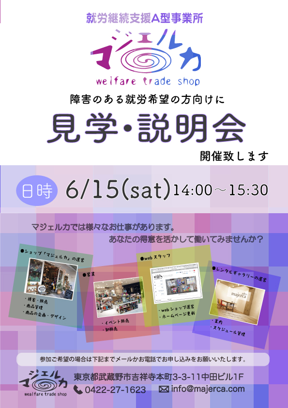 さて話変わって、明日の6/15土曜日にマジェルカのお仕事説明会を開催します!