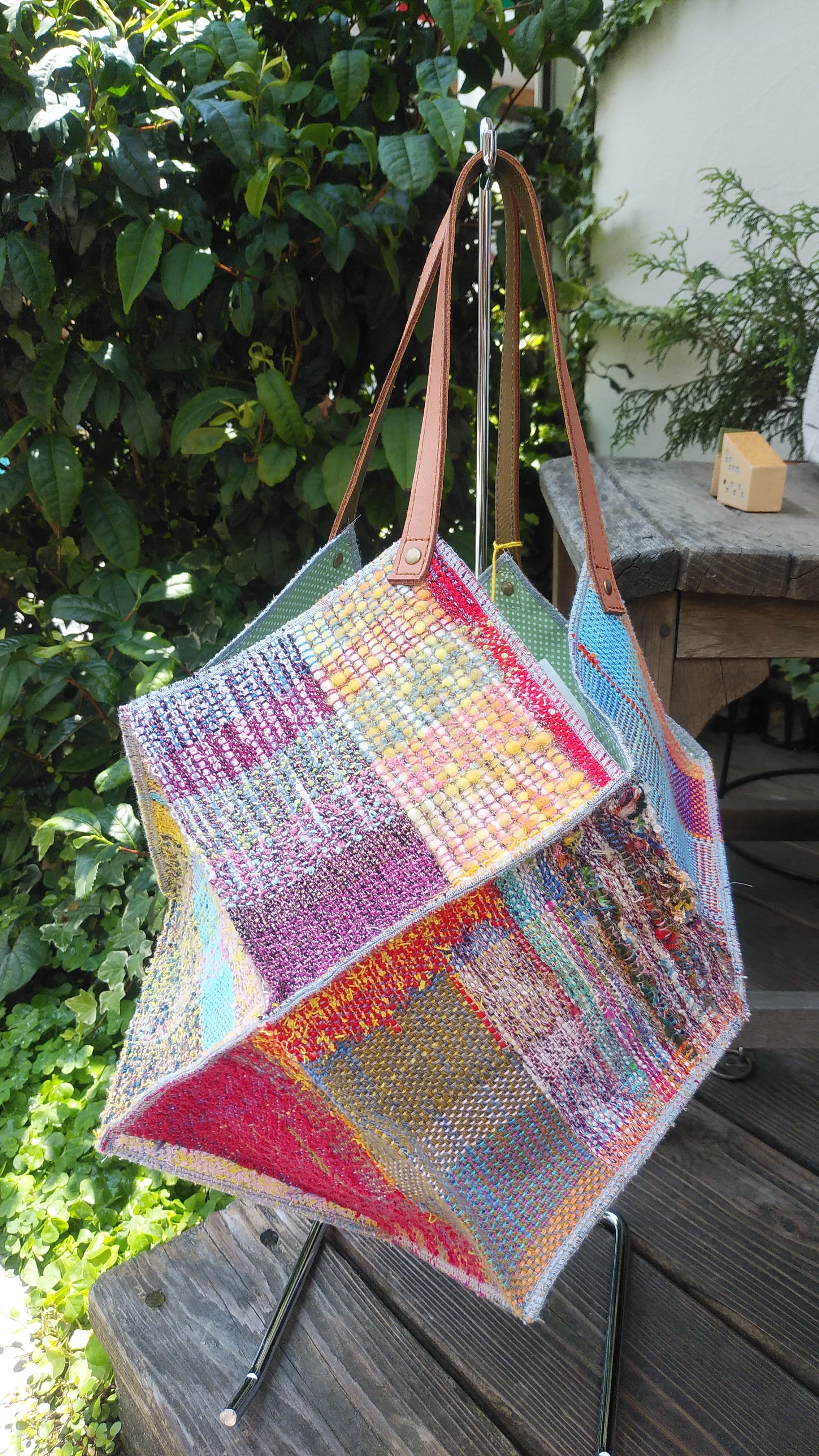 コンペイトウのような個性的な形状に、さまざまな色や太さの糸で織りが施されたこちらのバッグ。たくさんの色を使っているのに、破綻することなく上品にまとまっているのがとても不思議で、見てるだけでもワクワクしてきます♡
