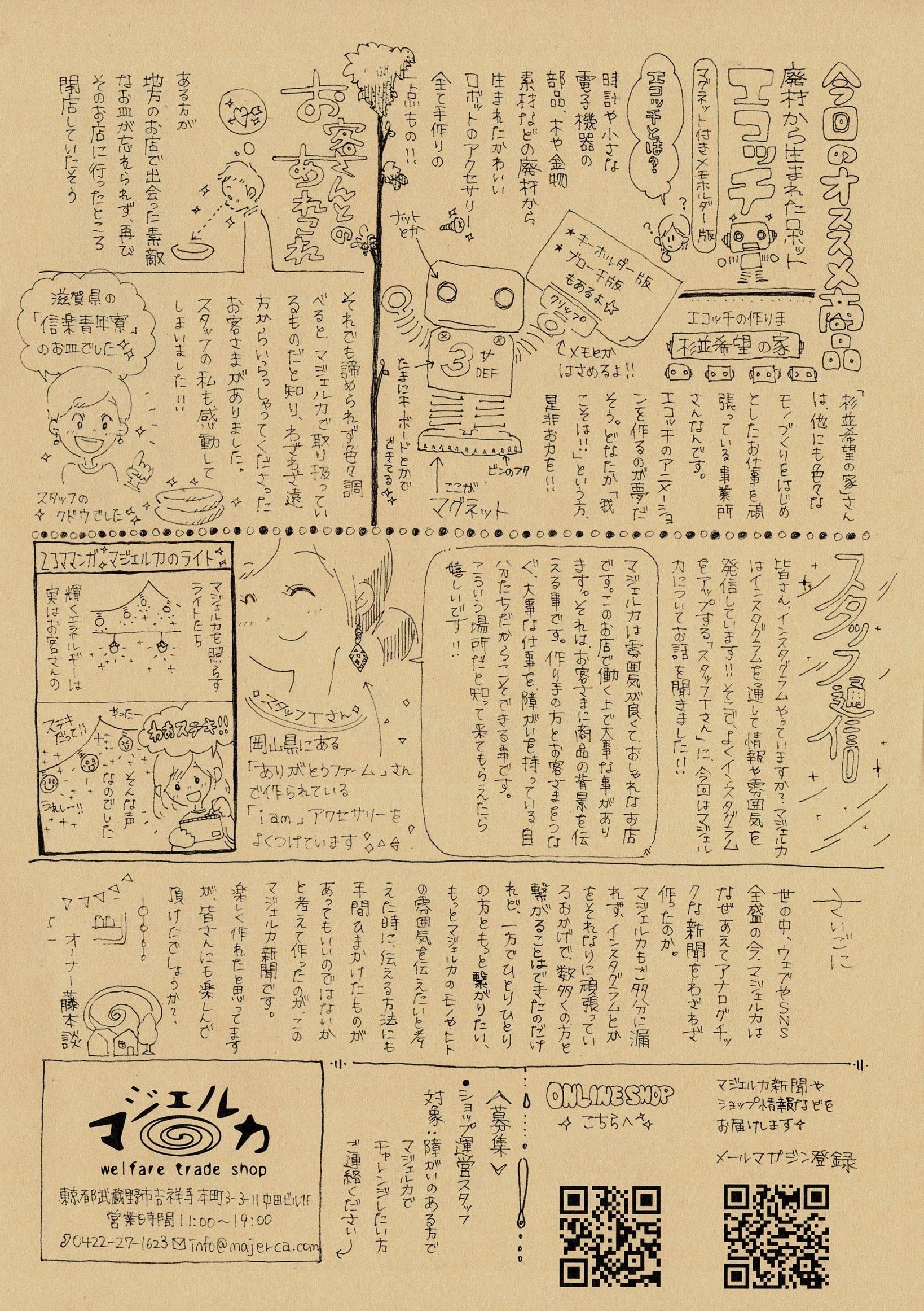 新聞の内容はマジェルカでのアレコレやマジェルカで並ぶ商品の作り手さんやお客様たちとのエピソードなどなど。