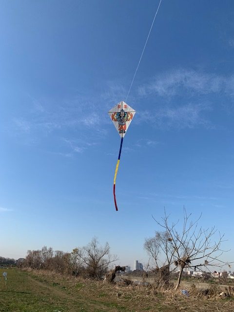 つい、先日、オーナーがうちの子どもに去年販売していた和凧をくれたので、多摩川の土手で一緒に遊んできました。