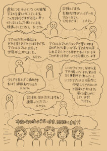可愛らしいデザインはこのマジェルカ新聞も書いてくれている、以前マジェルカに通っていたメンバーのオガちゃんのデザインです。