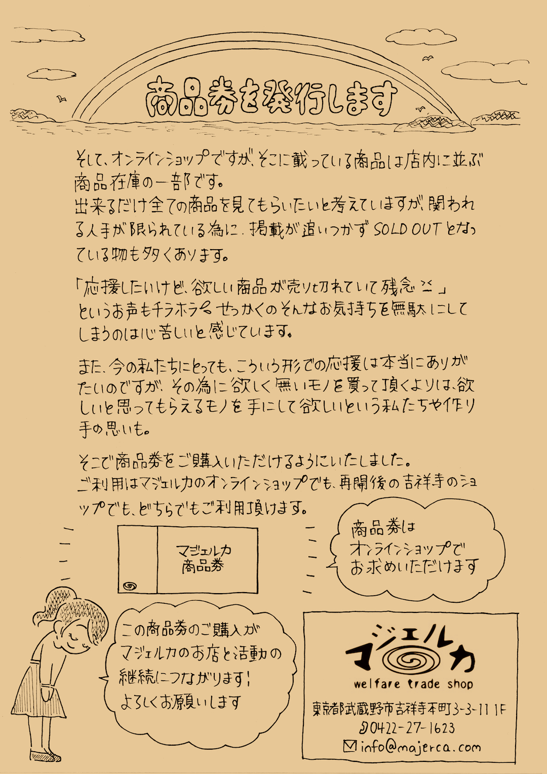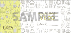 5000円の他に500円券も作ったのは、将来の社会を作るチビっ子がこれを握りしめてマジェルカみたいなショップに遊びに来てくれたら楽しいなという思いからでした。