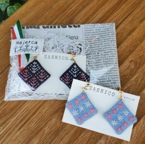 刺し子のピアスやイヤリングも、世代を問わず贈り物にぴったり。
