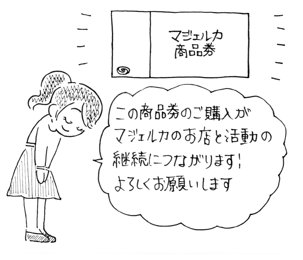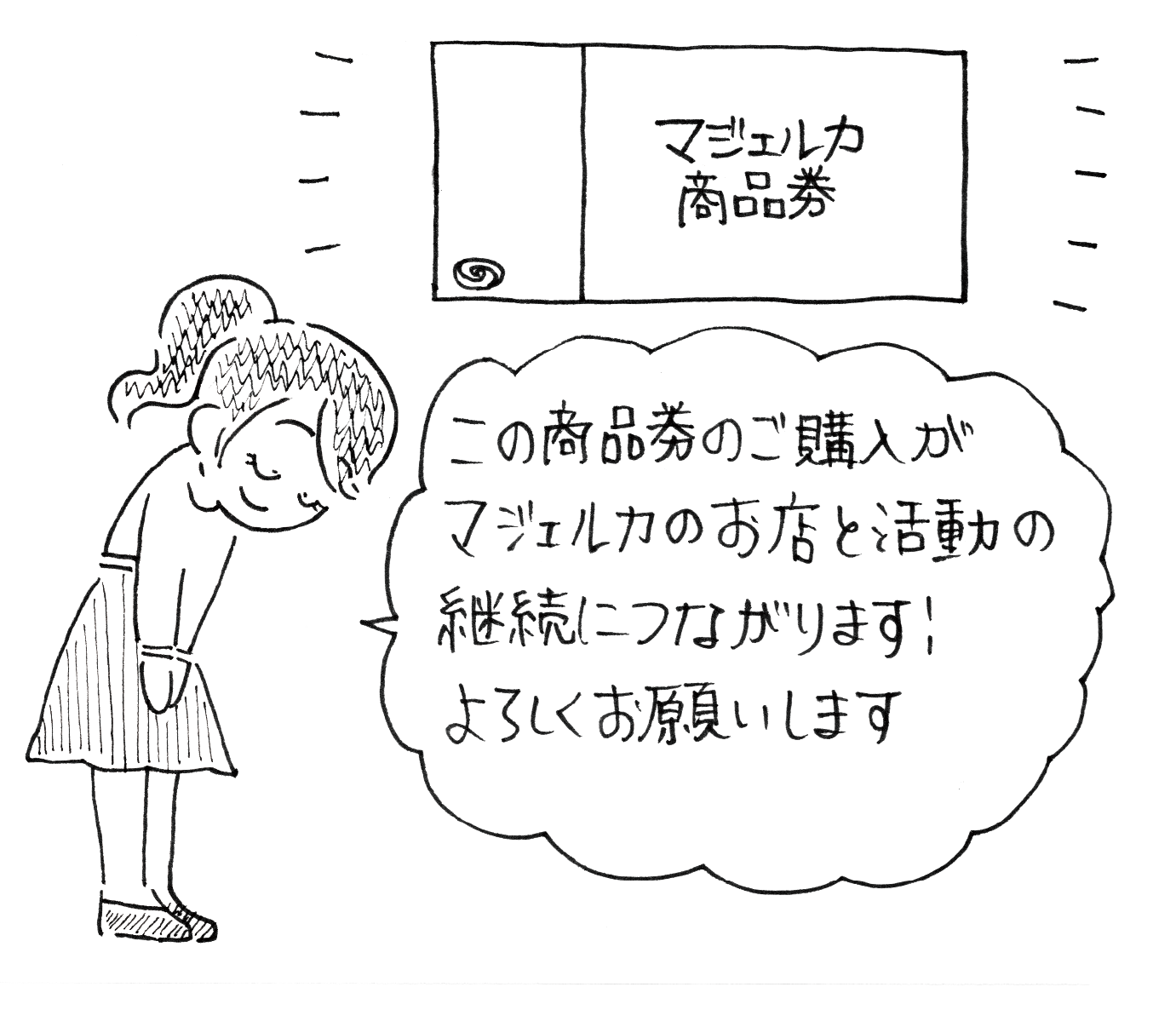 ですので、今後のマジェルカオンラインショップに今まで以上に期待を持って頂きたいのと同時に、もう一つ、今、商品をお求めにならないような場合でも、マジェルカの場を支えて頂く為に「商品券」のご購入というのもぜひご検討下されば大変ありがたく思っております。