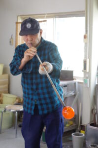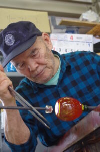 吹き手が一人でガラスを作るのではなく、チームガラスとしてみんなで一つの作品を作っているのだとか。